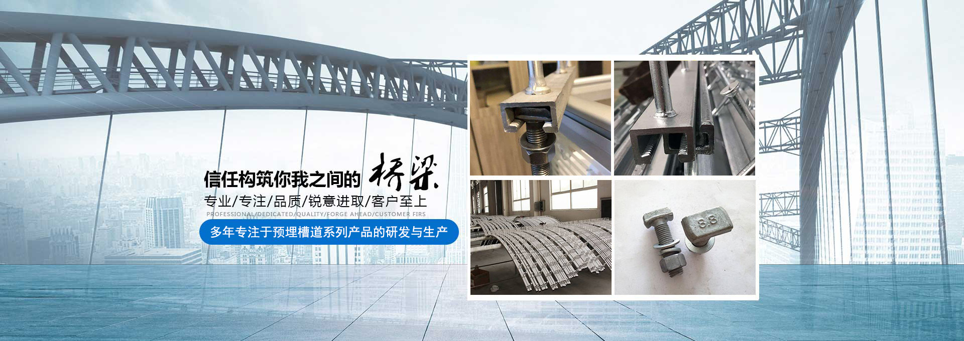主要產品有:預埋槽道、管廊支架、管廊托臂、托臂支架、帶齒預埋槽道、弧形預埋槽道、隧道預埋槽道、高鐵吊蘭預埋槽道、幕墻預埋槽道、地下綜合管廊槽道、V型預埋槽道、C型鋼槽道、哈芬槽T型螺栓,訂做各種異型件。材料采用正規大廠材質,產品經過嚴格檢驗,保證產品質量。